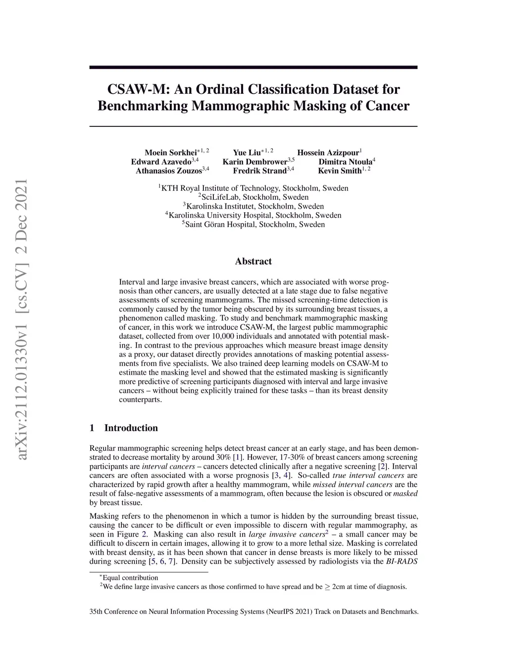 CSAW-M: An Ordinal Classification Dataset for Benchmarking Mammographic Masking of Cancer