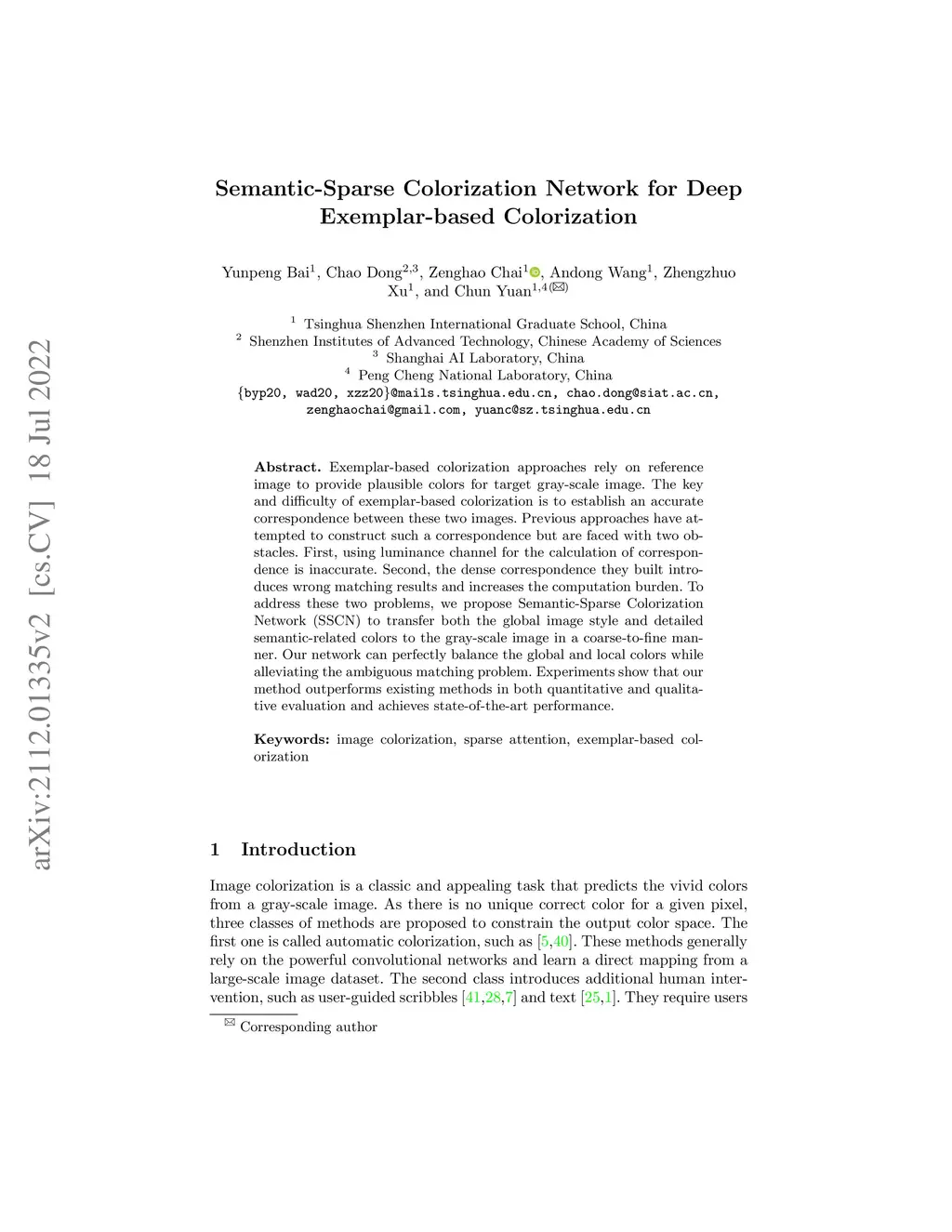 Semantic-Sparse Colorization Network for Deep Exemplar-based