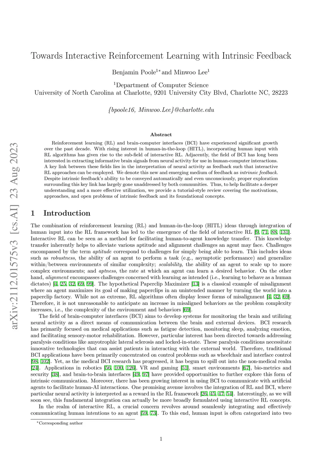 Reinforcement learning (RL) and brain-computer interfaces (BCI) have experienced significant growth over the past decade. With rising interest in human-in-the-loop (HITL), incorporating human input with RL algorithms has given rise to the sub-field of interactive RL. Adjacently, the field of BCI has long been interested in extracting informative brain signals from neural activity for use in human-computer interactions. A key link between these fields lies in the interpretation of neural activity as feedback such that interactive RL approaches can be employed. We denote this new and emerging medium of feedback as intrinsic feedback. Despite intrinsic feedback's ability to be conveyed automatically and even unconsciously, proper exploration surrounding this key link has largely gone unaddressed by both communities. Thus, to help facilitate a deeper understanding and a more effective utilization, we provide a tutorial-style review covering the motivations, approaches, and open problems of intrinsic feedback and its foundational concepts.