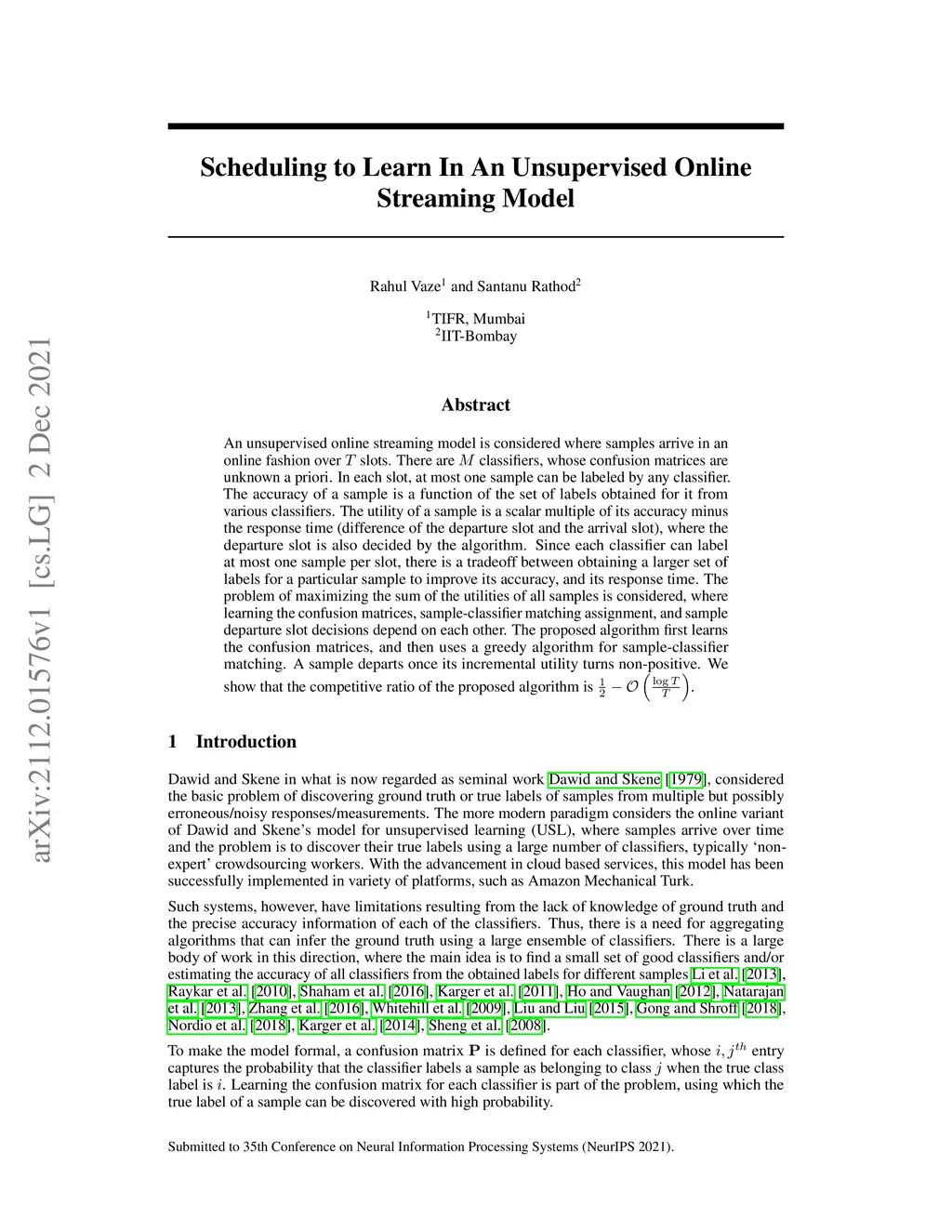 Scheduling to Learn In An Unsupervised Online Streaming Model