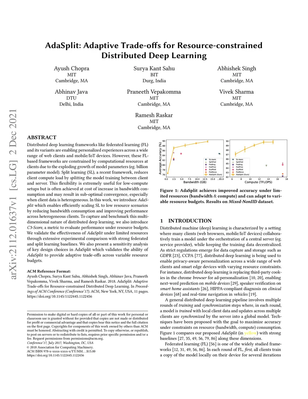 AdaSplit: Adaptive Trade-offs for Resource-constrained Distributed Deep