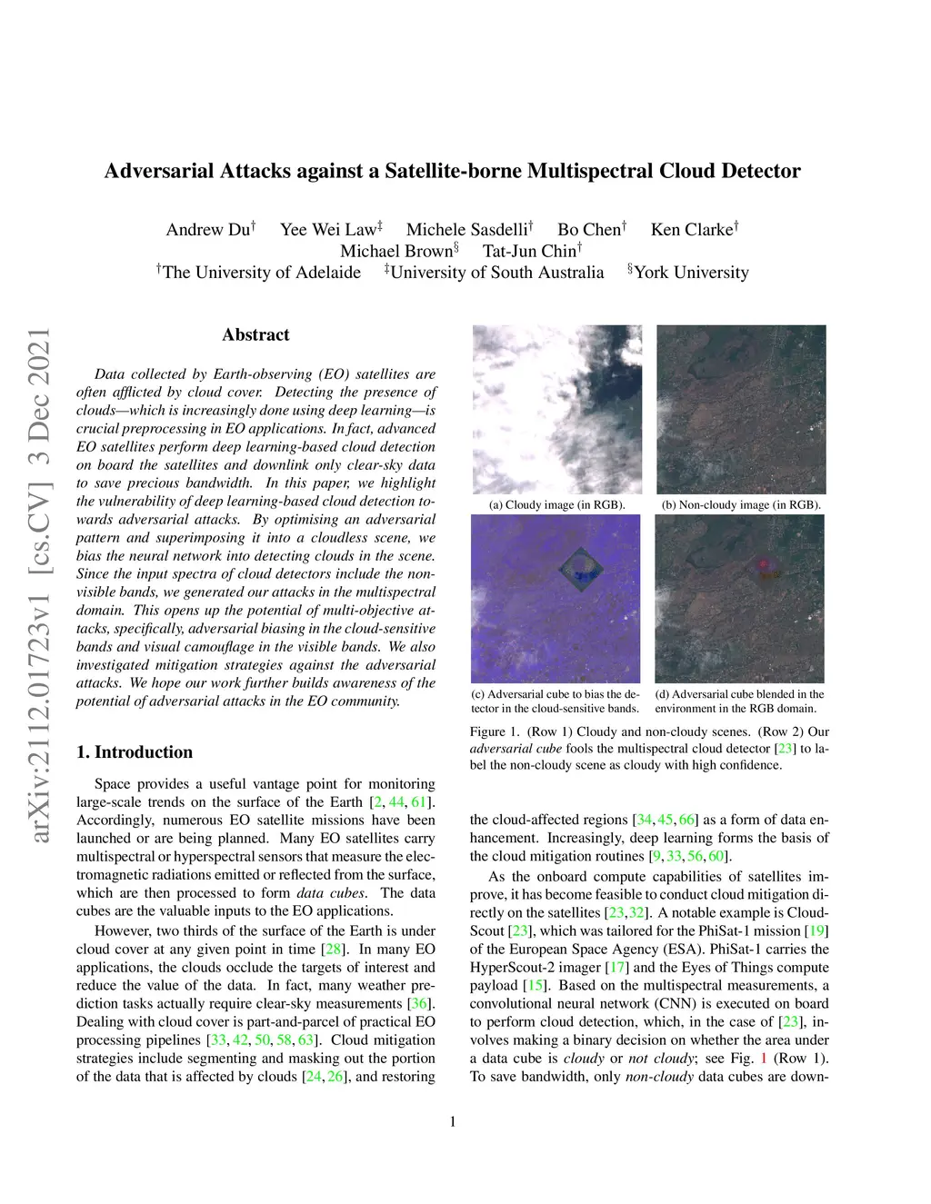 Adversarial Attacks against a Satellite-borne Multispectral Cloud