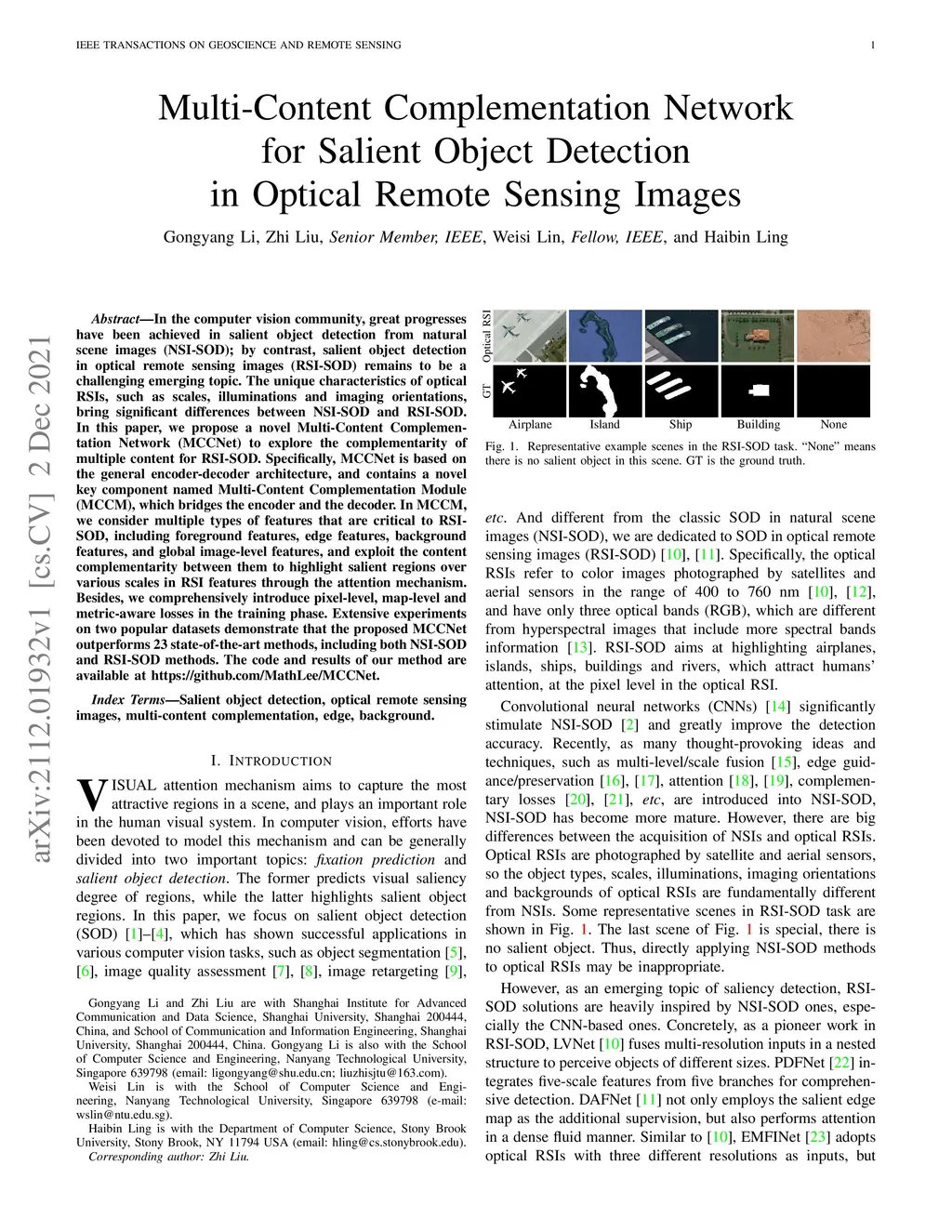 In the computer vision community, great progresses have been achieved in salient object detection from natural scene images (NSI-SOD); by contrast, salient object detection in optical remote sensing images (RSI-SOD) remains to be a challenging emerging topic. The unique characteristics of optical RSIs, such as scales, illuminations and imaging orientations, bring significant differences between NSI-SOD and RSI-SOD. In this paper, we propose a novel Multi-Content Complementation Network (MCCNet) to explore the complementarity of multiple content for RSI-SOD. Specifically, MCCNet is based on the general encoder-decoder architecture, and contains a novel key component named Multi-Content Complementation Module (MCCM), which bridges the encoder and the decoder. In MCCM, we consider multiple types of features that are critical to RSI-SOD, including foreground features, edge features, background features, and global image-level features, and exploit the content complementarity between them to highlight salient regions over various scales in RSI features through the attention mechanism. Besides, we comprehensively introduce pixel-level, map-level and metric-aware losses in the training phase. Extensive experiments on two popular datasets demonstrate that the proposed MCCNet outperforms 23 state-of-the-art methods, including both NSI-SOD and RSI-SOD methods. The code and results of our method are available at https://github.com/MathLee/MCCNet.