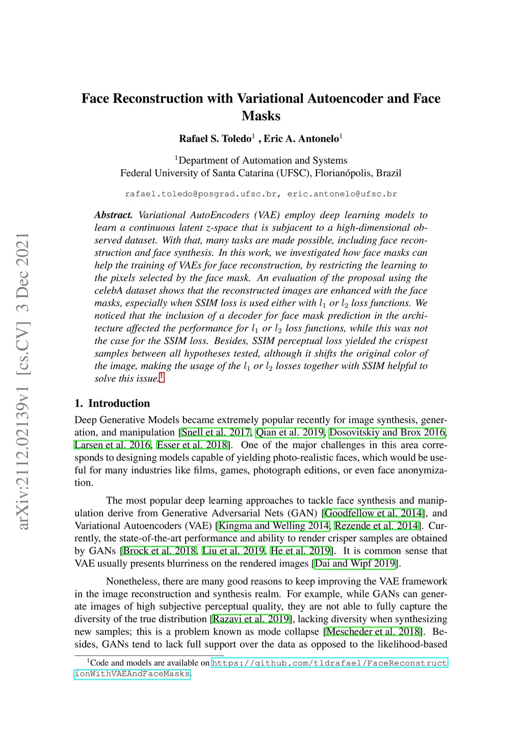 Face Reconstruction with Variational Autoencoder and Face Masks