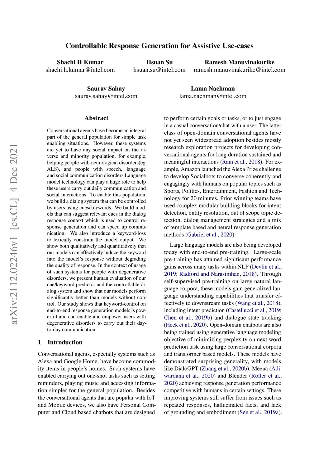 Conversational agents have become an integral part of the general population for simple task enabling situations. However, these systems are yet to have any social impact on the diverse and minority population, for example, helping people with neurological disorders, for example ALS, and people with speech, language and social communication disorders. Language model technology can play a huge role to help these users carry out daily communication and social interactions. To enable this population, we build a dialog system that can be controlled by users using cues or keywords. We build models that can suggest relevant cues in the dialog response context which is used to control response generation and can speed up communication. We also introduce a keyword loss to lexically constrain the model output. We show both qualitatively and quantitatively that our models can effectively induce the keyword into the model response without degrading the quality of response. In the context of usage of such systems for people with degenerative disorders, we present human evaluation of our cue or keyword predictor and the controllable dialog system and show that our models perform significantly better than models without control. Our study shows that keyword control on end to end response generation models is powerful and can enable and empower users with degenerative disorders to carry out their day to day communication.