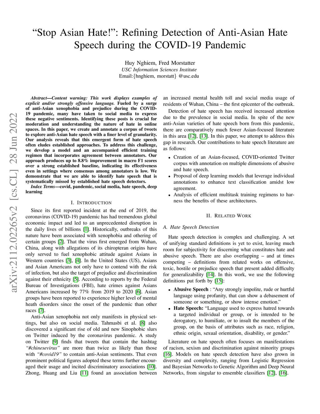"Stop Asian Hate!" : Refining Detection of Anti-Asian Hate Speech During