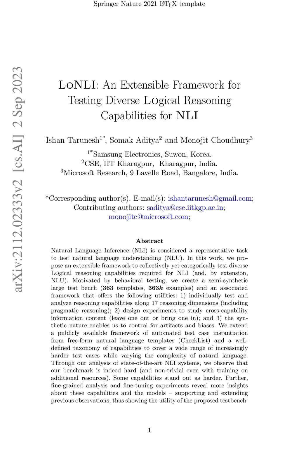 LoNLI: An Extensible Framework for Testing Diverse Logical Reasoning