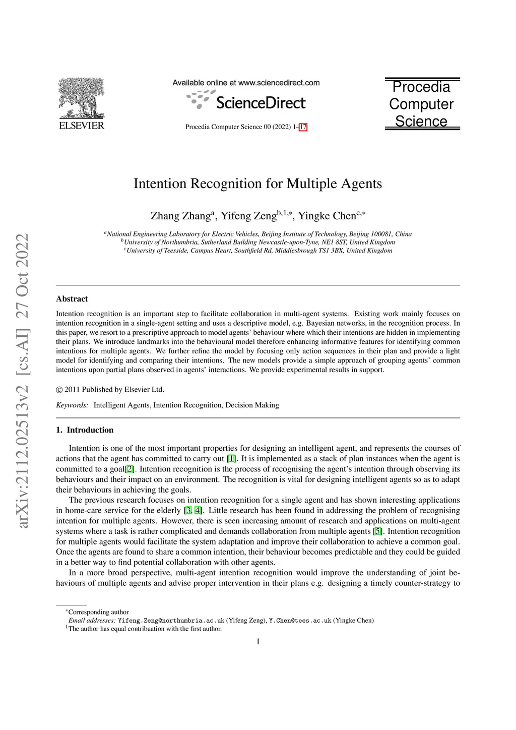 Intention recognition is an important step to facilitate collaboration among multiple agents. Existing work mainly focuses on intention recognition in a single-agent setting and uses a descriptive model, e.g. Bayesian networks, in the recognition process. In this article, we develop a new approach of identifying intentions for multiple agents through a clustering algorithm. We first define an intention model for multiple agents of interest. We use a prescriptive approach to model agents' behaviours where their intentions are hidden in the implementation of their plans. We introduce landmarks into the behavioural model therefore enhancing informative features to identify common intentions for multiple agents. Subsequently, we further refine the model by focusing only action sequences in their plan and provide a light model for identifying and comparing their intentions. The new models provide a simple approach of grouping agents' common intentions upon partial plans observed in agents' interactions. Then, we transform the intention recognition into an un-supervised learning problem and adapt a clustering algorithm to group intentions of multiple agents through comparing their behavioural models. We conduct the clustering process by measuring similarity of probability distributions over potential landmarks in intention models so as to discover agents' common intentions. Finally, we examine the new intention recognition approaches in two problem domains. We demonstrate importance of recognising common intentions of multiple agents in achieving their goals and provide experimental results to show performance of the new approaches.