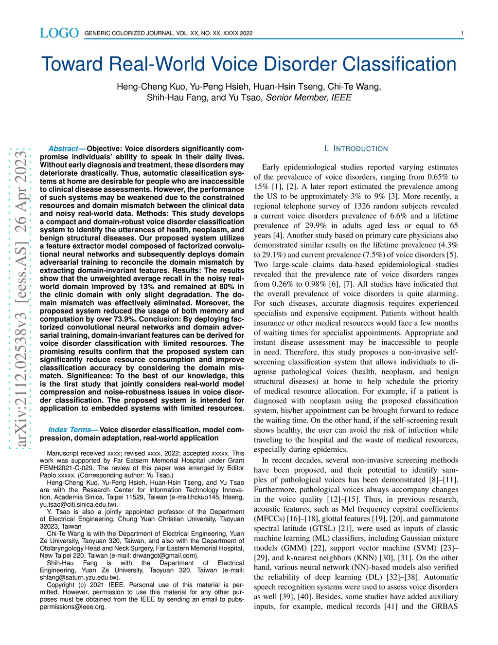 Objective: Voice disorders significantly compromise individuals' ability to speak in their daily lives. Without early diagnosis and treatment, these disorders may deteriorate drastically. Thus, automatic classification systems at home are desirable for people who are inaccessible to clinical disease assessments. However, the performance of such systems may be weakened due to the constrained resources and domain mismatch between the clinical data and noisy real-world data. Methods: This study develops a compact and domain-robust voice disorder classification system to identify the utterances of health, neoplasm, and benign structural diseases. Our proposed system utilizes a feature extractor model composed of factorized convolutional neural networks and subsequently deploys domain adversarial training to reconcile the domain mismatch by extracting domain invariant features. Results: The results show that the unweighted average recall in the noisy real-world domain improved by 13% and remained at 80% in the clinic domain with only slight degradation. The domain mismatch was effectively eliminated. Moreover, the proposed system reduced the usage of both memory and computation by over 73.9%. Conclusion: By deploying factorized convolutional neural networks and domain adversarial training, domain-invariant features can be derived for voice disorder classification with limited resources. The promising results confirm that the proposed system can significantly reduce resource consumption and improve classification accuracy by considering the domain mismatch. Significance: To the best of our knowledge, this is the first study that jointly considers real-world model compression and noise-robustness issues in voice disorder classification. The proposed system is intended for application to embedded systems with limited resources.