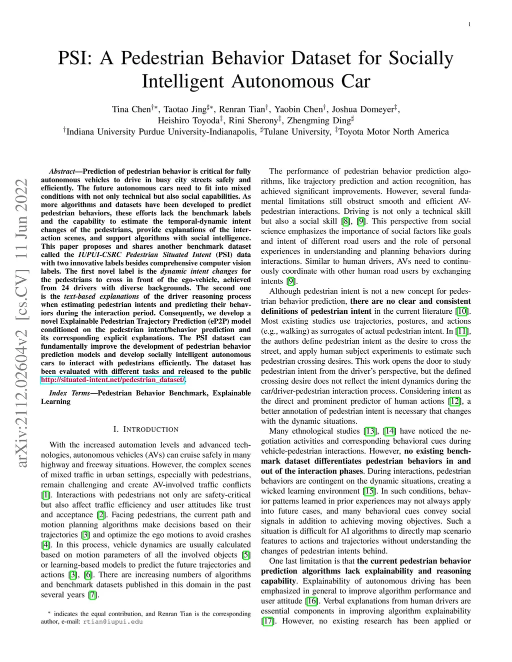 PSI: A Pedestrian Behavior Dataset for Socially Intelligent Autonomous
