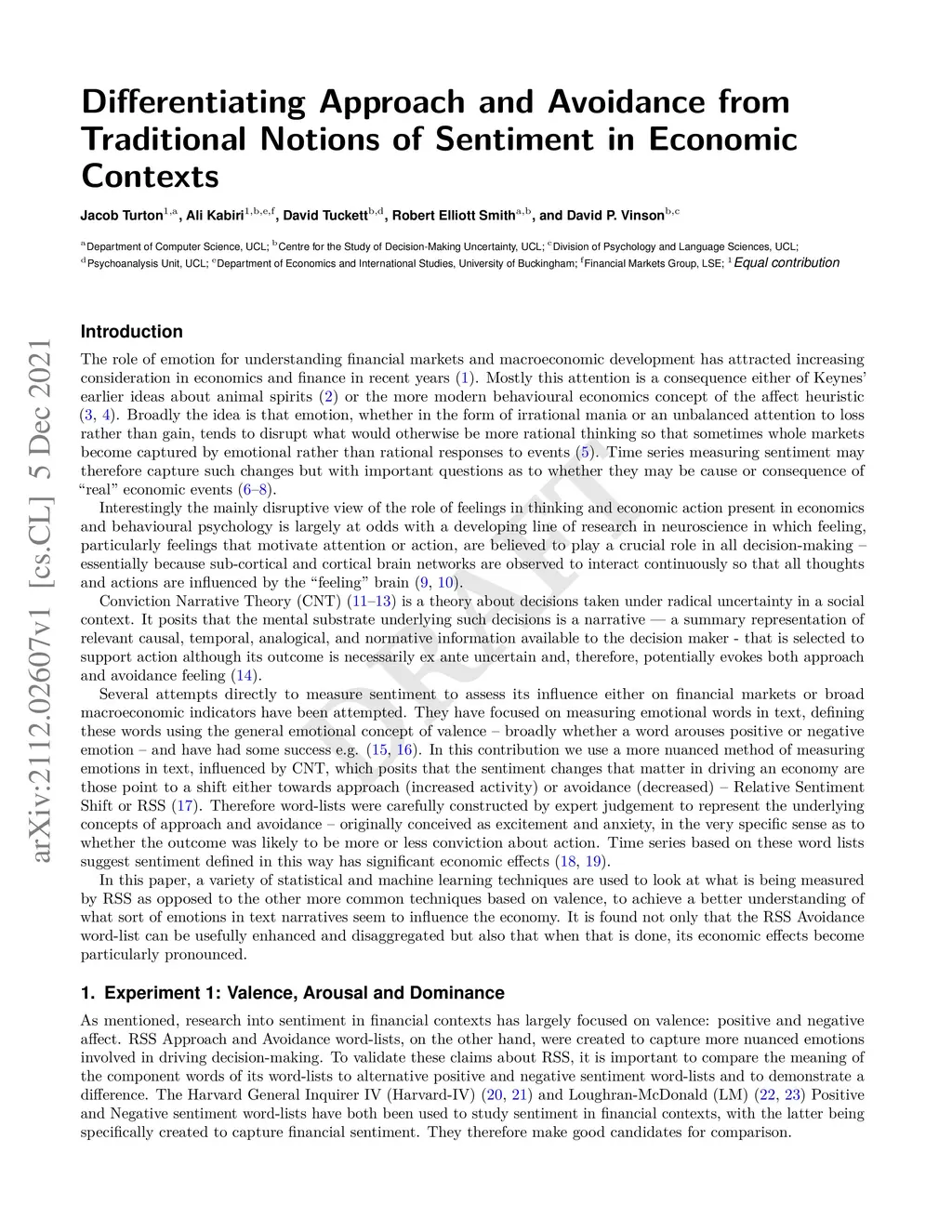 There is growing interest in the role of sentiment in economic decision-making. However, most research on the subject has focused on positive and negative valence. Conviction Narrative Theory (CNT) places Approach and Avoidance sentiment (that which drives action) at the heart of real-world decision-making, and argues that it better captures emotion in financial markets. This research, bringing together psychology and machine learning, introduces new techniques to differentiate Approach and Avoidance from positive and negative sentiment on a fundamental level of meaning. It does this by comparing word-lists, previously constructed to capture these concepts in text data, across a large range of semantic features. The results demonstrate that Avoidance in particular is well defined as a separate type of emotion, which is evaluative/cognitive and action-orientated in nature. Refining the Avoidance word-list according to these features improves macroeconomic models, suggesting that they capture the essence of Avoidance and that it plays a crucial role in driving real-world economic decision-making.