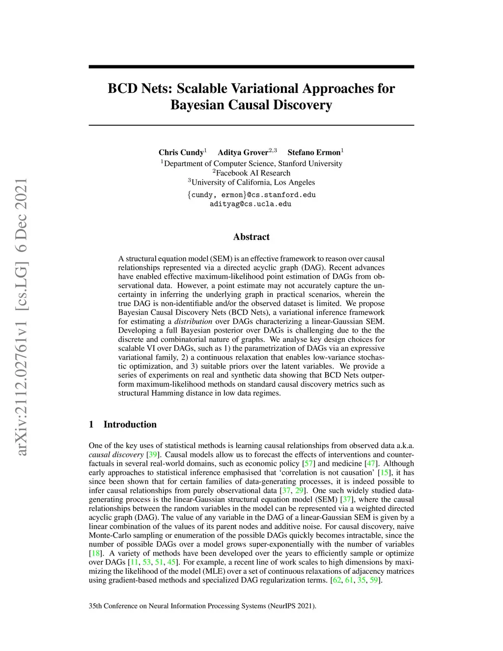 BCD Nets: Scalable Variational Approaches for Bayesian Causal Discovery