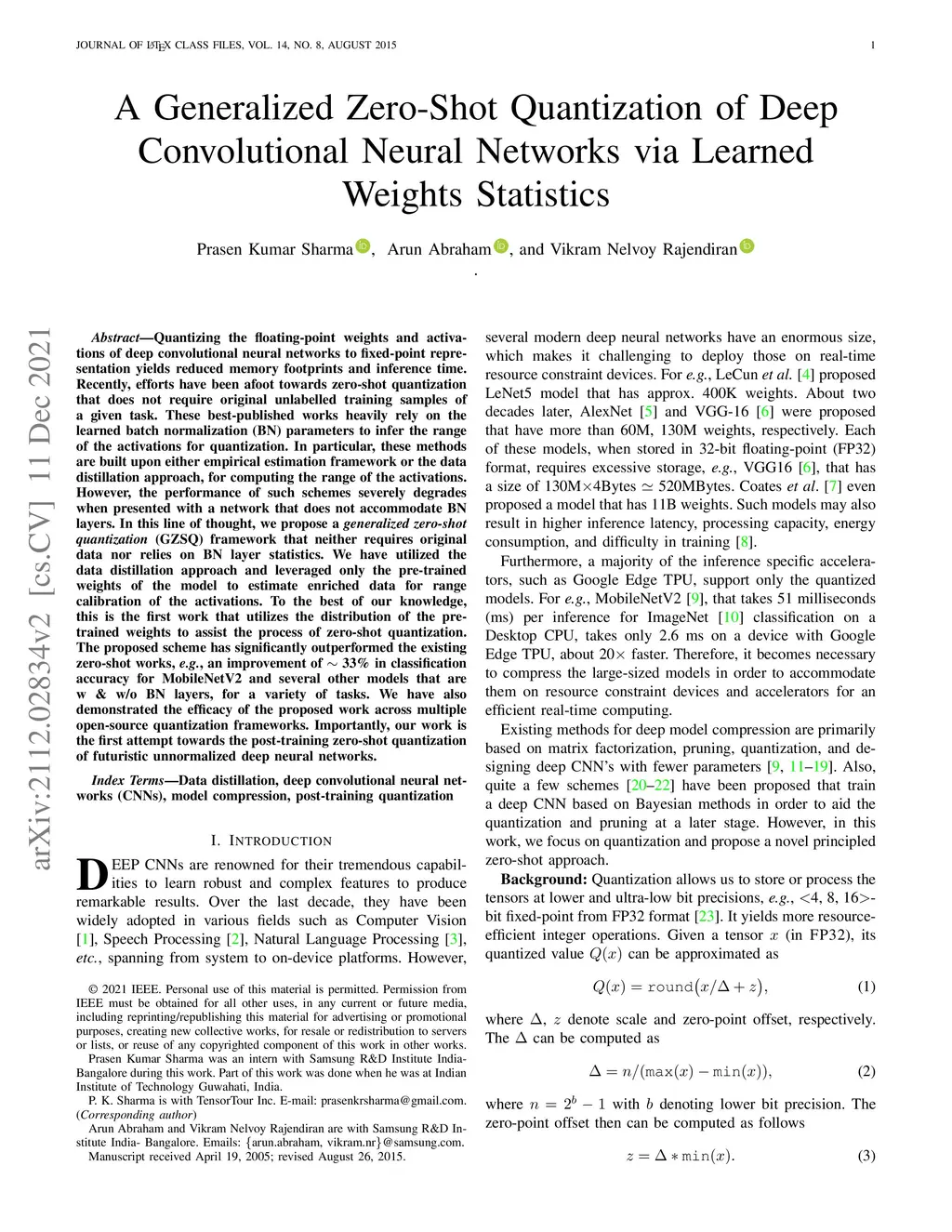 A Generalized Zero-Shot Quantization of Deep Convolutional Neural