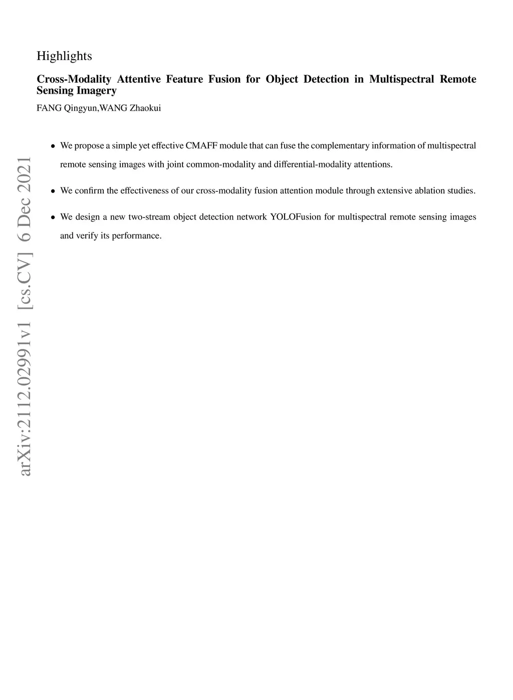 Cross-Modality Attentive Feature Fusion for Object Detection in