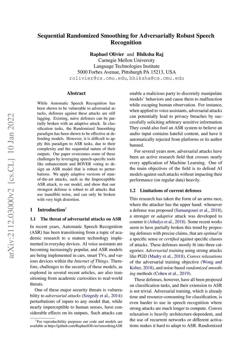 Sequential Randomized Smoothing for Adversarially Robust Speech