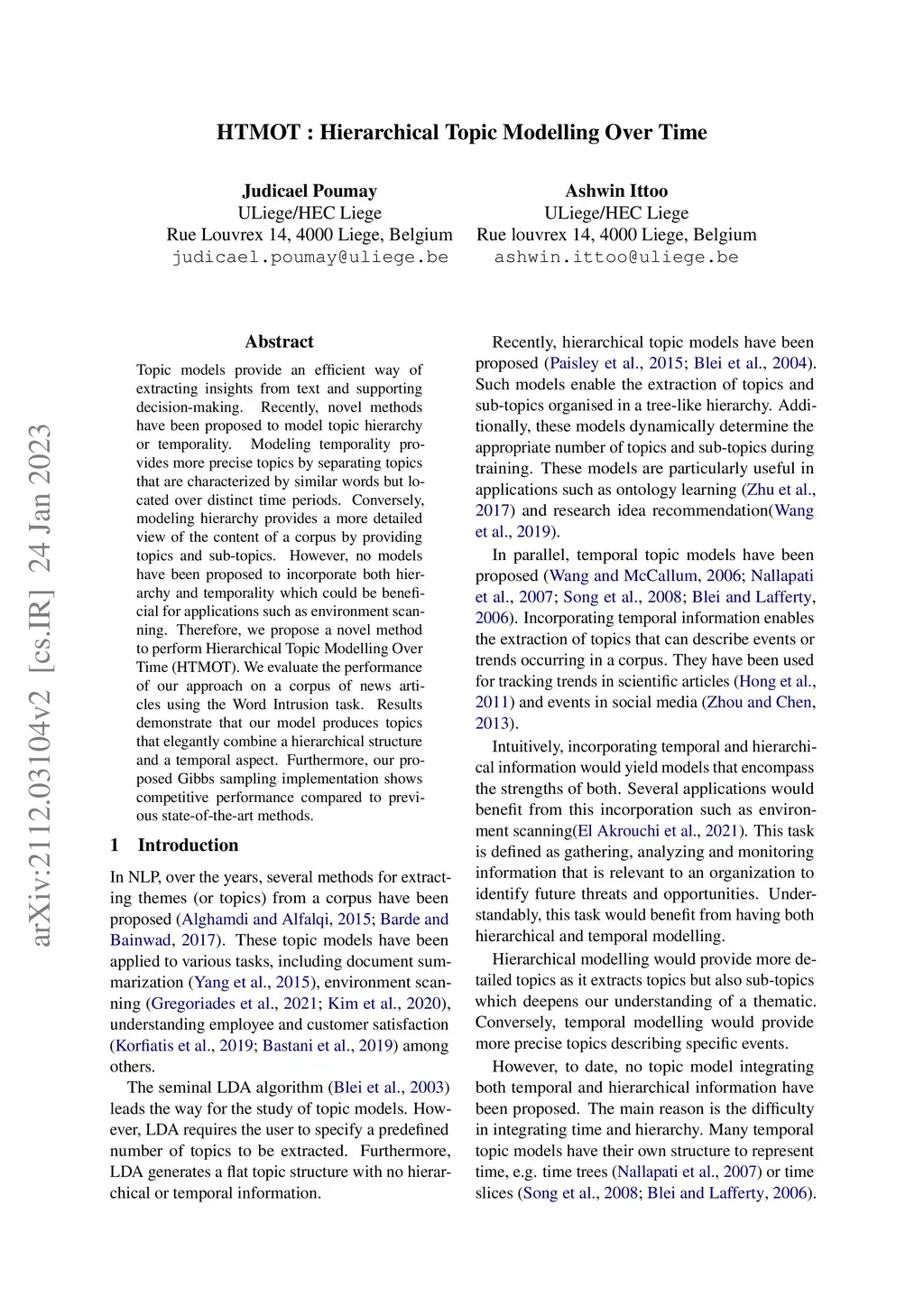 HTMOT : Hierarchical Topic Modelling Over Time