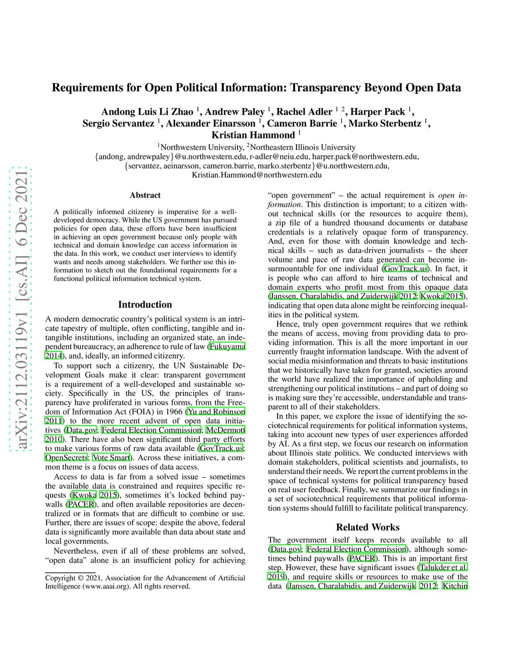A politically informed citizenry is imperative for a welldeveloped democracy. While the US government has pursued policies for open data, these efforts have been insufficient in achieving an open government because only people with technical and domain knowledge can access information in the data. In this work, we conduct user interviews to identify wants and needs among stakeholders. We further use this information to sketch out the foundational requirements for a functional political information technical system.