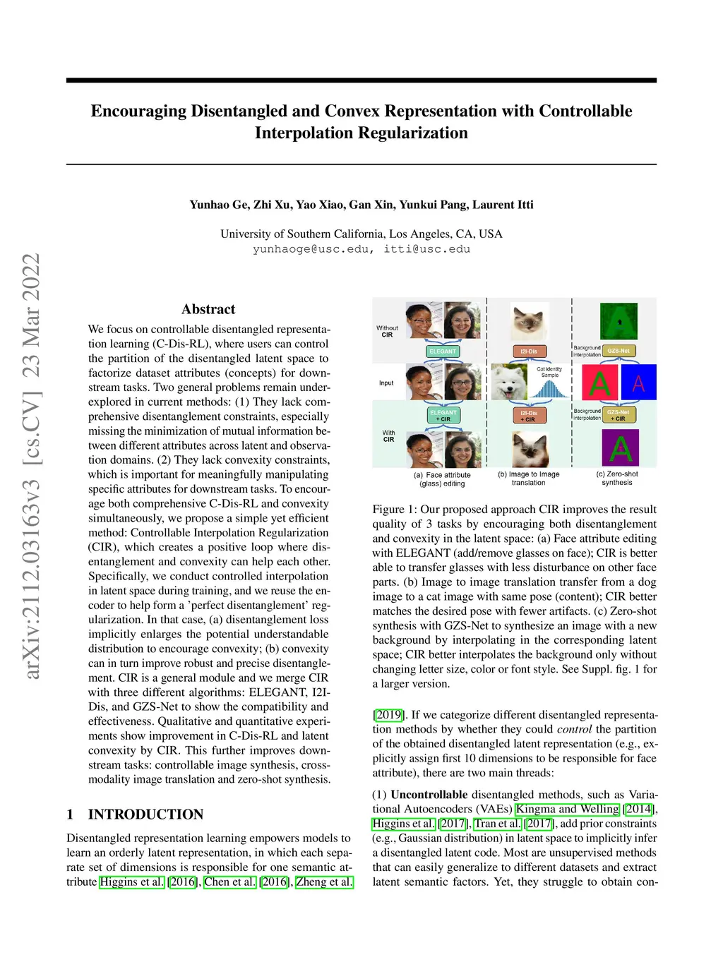 We focus on controllable disentangled representation learning (C-Dis-RL), where users can control the partition of the disentangled latent space to factorize dataset attributes (concepts) for downstream tasks. Two general problems remain under-explored in current methods: (1) They lack comprehensive disentanglement constraints, especially missing the minimization of mutual information between different attributes across latent and observation domains. (2) They lack convexity constraints, which is important for meaningfully manipulating specific attributes for downstream tasks. To encourage both comprehensive C-Dis-RL and convexity simultaneously, we propose a simple yet efficient method: Controllable Interpolation Regularization (CIR), which creates a positive loop where disentanglement and convexity can help each other. Specifically, we conduct controlled interpolation in latent space during training, and we reuse the encoder to help form a 'perfect disentanglement' regularization. In that case, (a) disentanglement loss implicitly enlarges the potential understandable distribution to encourage convexity; (b) convexity can in turn improve robust and precise disentanglement. CIR is a general module and we merge CIR with three different algorithms: ELEGANT, I2I-Dis, and GZS-Net to show the compatibility and effectiveness. Qualitative and quantitative experiments show improvement in C-Dis-RL and latent convexity by CIR. This further improves downstream tasks: controllable image synthesis, cross-modality image translation, and zero-shot synthesis.