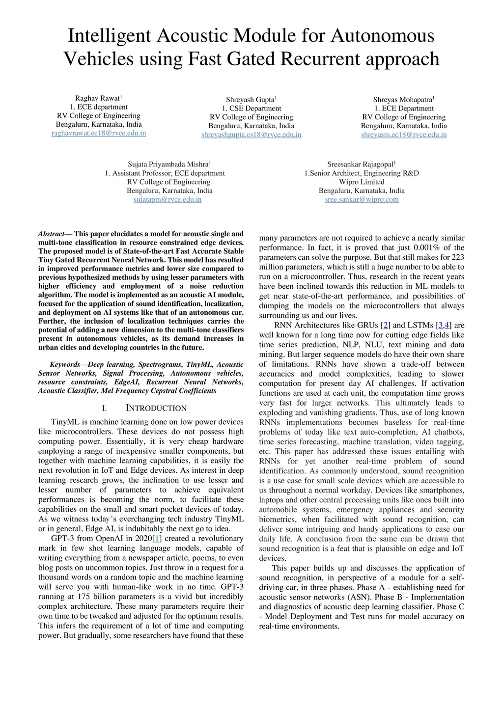 Intelligent Acoustic Module for Autonomous Vehicles using Fast Gated