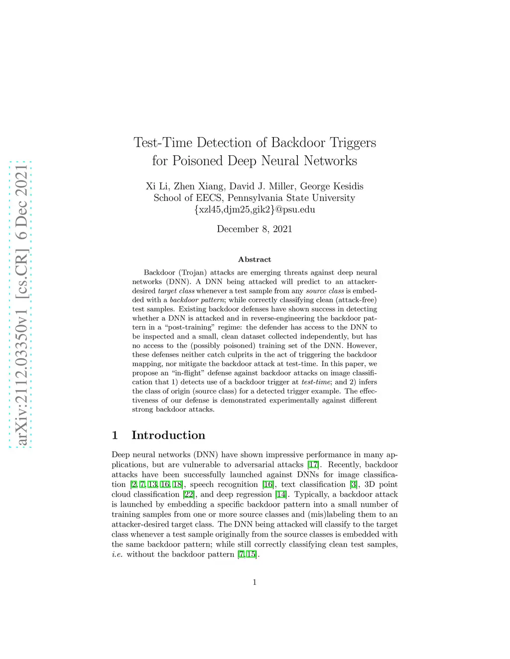 Test-Time Detection of Backdoor Triggers for Poisoned Deep Neural