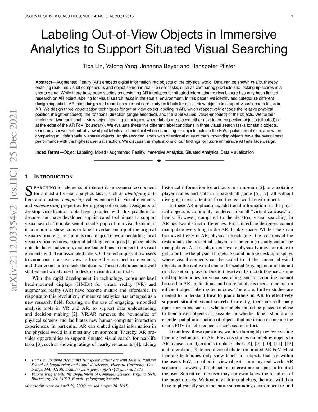 Labeling Out-of-View Objects in Immersive Analytics to Support Situated