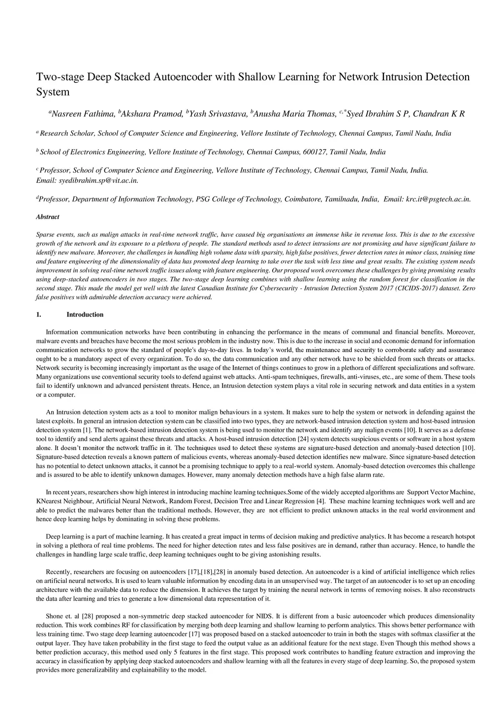 Two-stage Deep Stacked Autoencoder with Shallow Learning for Network