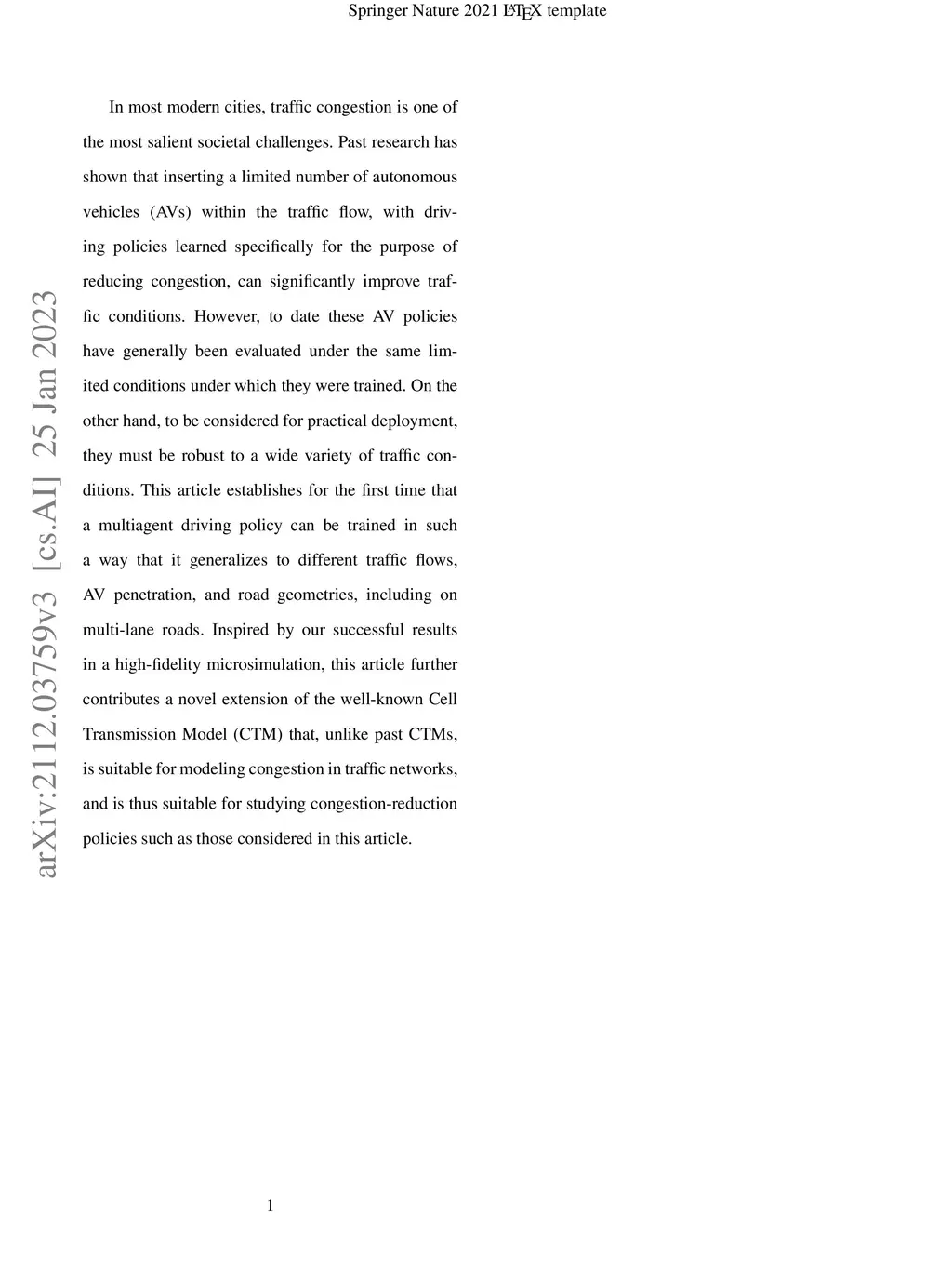 In most modern cities, traffic congestion is one of the most salient societal challenges. Past research has shown that inserting a limited number of autonomous vehicles (AVs) within the traffic flow, with driving policies learned specifically for the purpose of reducing congestion, can significantly improve traffic conditions. However, to date these AV policies have generally been evaluated under the same limited conditions under which they were trained. On the other hand, to be considered for practical deployment, they must be robust to a wide variety of traffic conditions. This article establishes for the first time that a multiagent driving policy can be trained in such a way that it generalizes to different traffic flows, AV penetration, and road geometries, including on multi-lane roads. Inspired by our successful results in a high-fidelity microsimulation, this article further contributes a novel extension of the well-known Cell Transmission Model (CTM) that, unlike past CTMs, is suitable for modeling congestion in traffic networks, and is thus suitable for studying congestion-reduction policies such as those considered in this article.