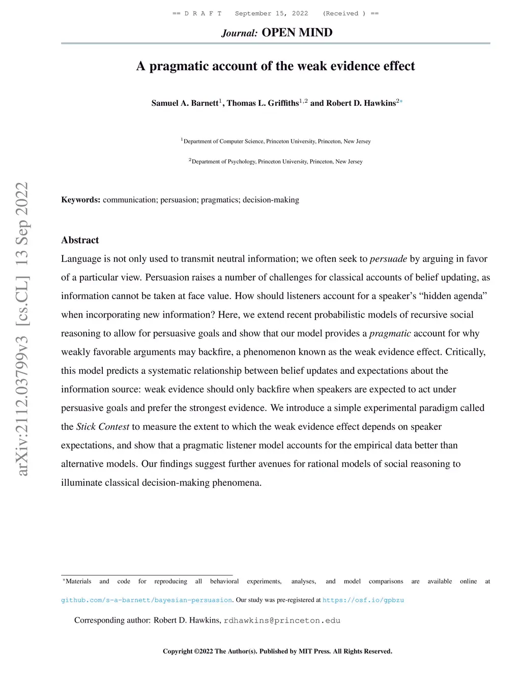 A pragmatic account of the weak evidence effect