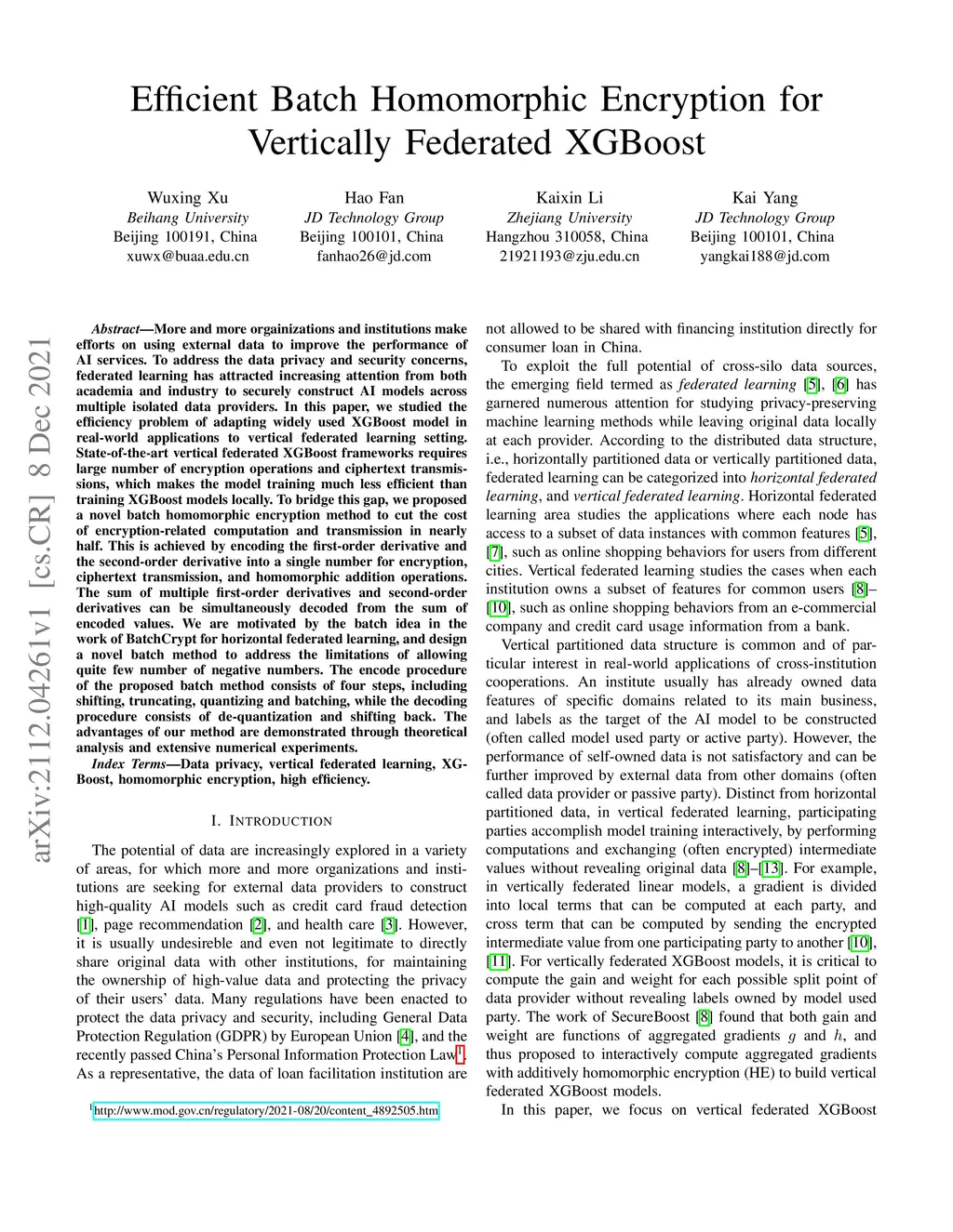 Efficient Batch Homomorphic Encryption for Vertically Federated XGBoost