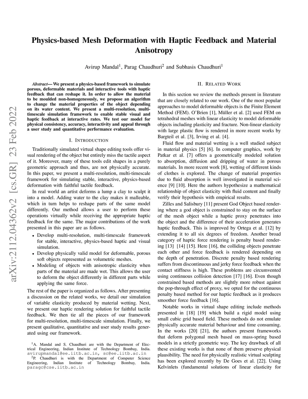 Physics-based Mesh Deformation with Haptic Feedback and Material
