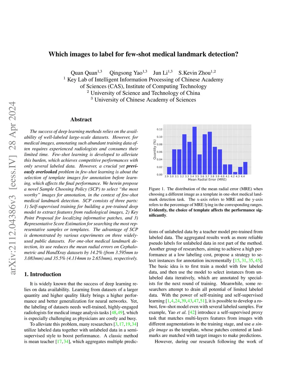 The success of deep learning methods relies on the availability of well-labeled large-scale datasets. However, for medical images, annotating such abundant training data often requires experienced radiologists and consumes their limited time. Few-shot learning is developed to alleviate this burden, which achieves competitive performances with only several labeled data. However, a crucial yet previously overlooked problem in few-shot learning is about the selection of template images for annotation before learning, which affects the final performance. We herein propose a novel Sample Choosing Policy (SCP) to select "the most worthy" images for annotation, in the context of few-shot medical landmark detection. SCP consists of three parts: 1) Self-supervised training for building a pre-trained deep model to extract features from radiological images, 2) Key Point Proposal for localizing informative patches, and 3) Representative Score Estimation for searching the most representative samples or templates. The advantage of SCP is demonstrated by various experiments on three widely-used public datasets. For one-shot medical landmark detection, its use reduces the mean radial errors on Cephalometric and HandXray datasets by 14.2% (from 3.595mm to 3.083mm) and 35.5% (4.114mm to 2.653mm), respectively.