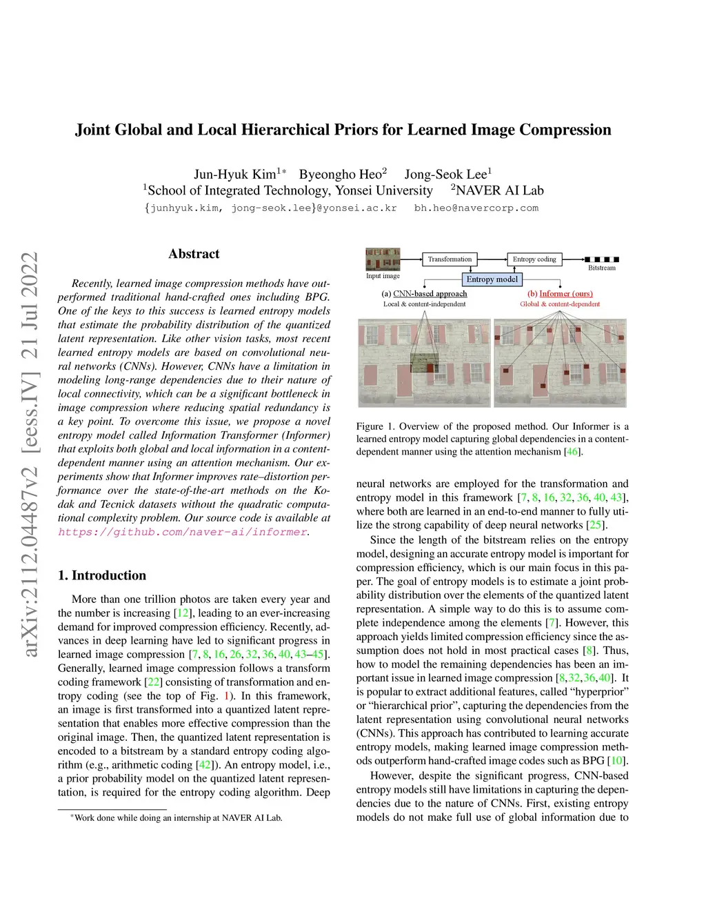 Joint Global and Local Hierarchical Priors for Learned Image Compression