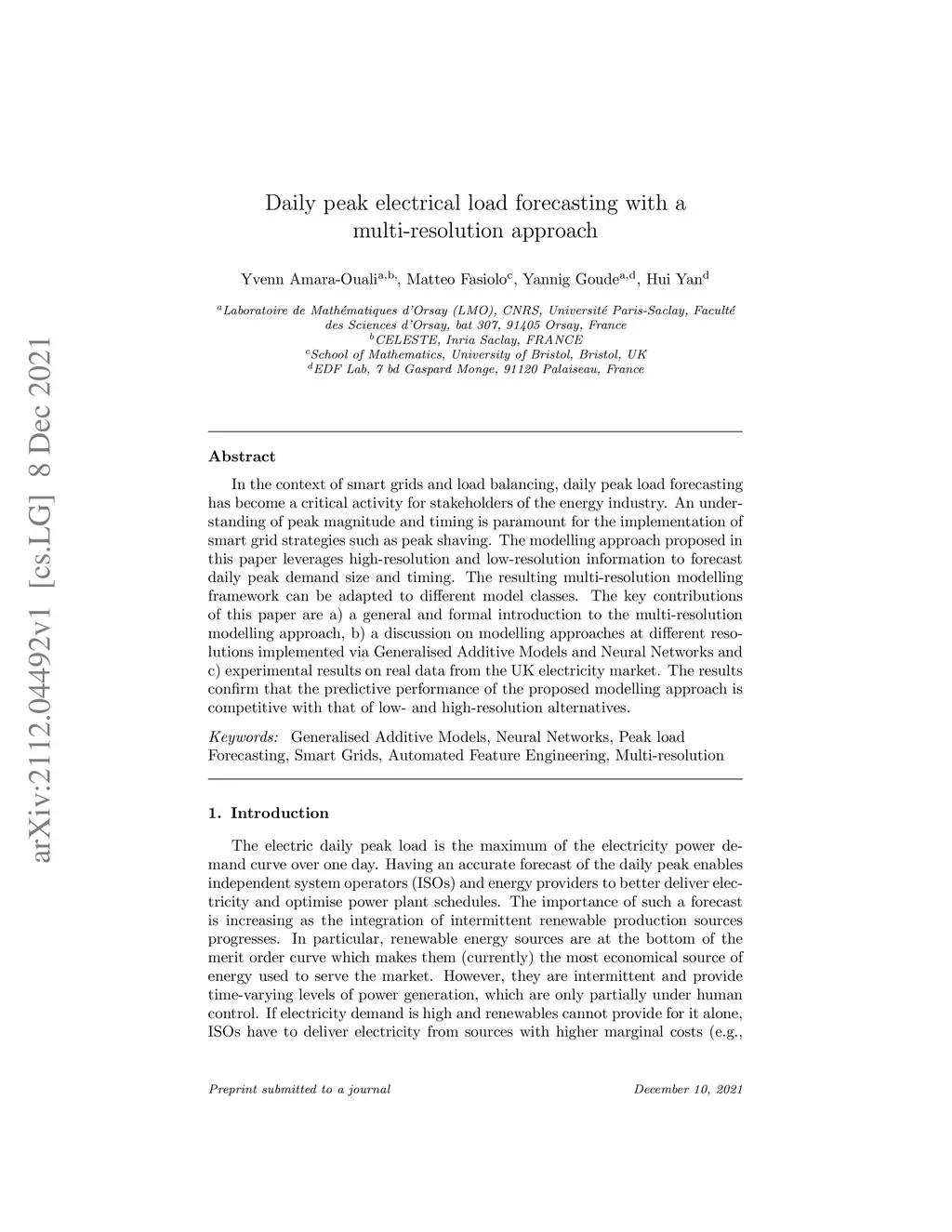 Daily peak electrical load forecasting with a multi-resolution approach