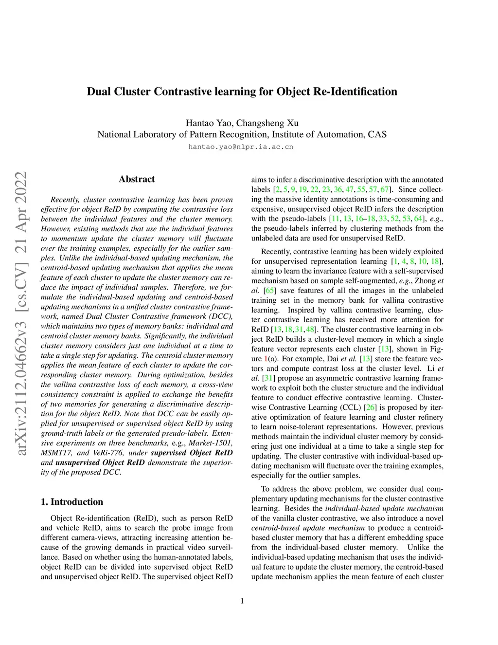 Dual Cluster Contrastive learning for Object Re-Identification
