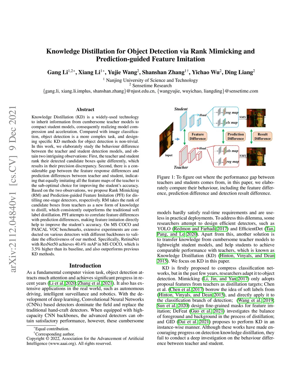 Knowledge Distillation for Object Detection via Rank Mimicking and