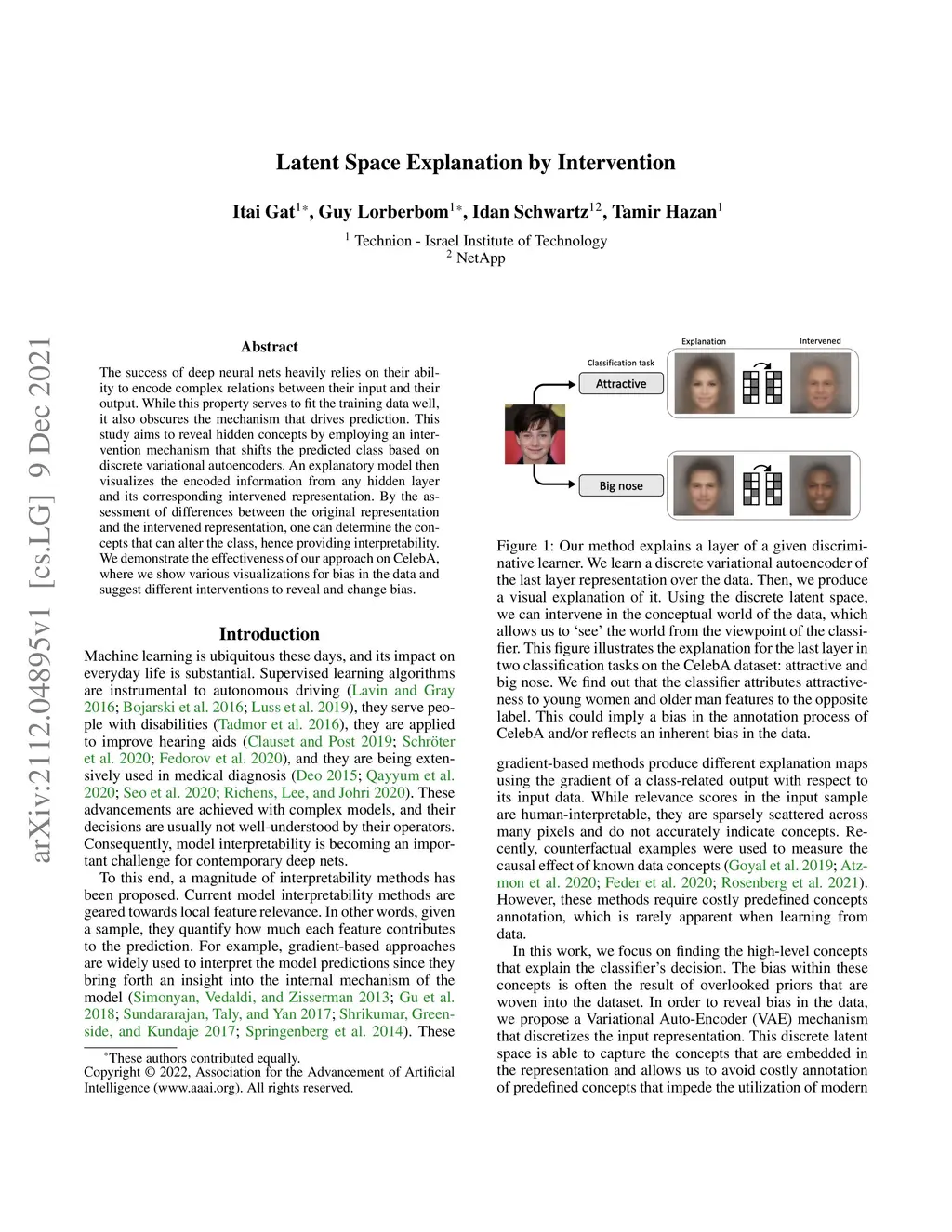 The success of deep neural nets heavily relies on their ability to encode complex relations between their input and their output. While this property serves to fit the training data well, it also obscures the mechanism that drives prediction. This study aims to reveal hidden concepts by employing an intervention mechanism that shifts the predicted class based on discrete variational autoencoders. An explanatory model then visualizes the encoded information from any hidden layer and its corresponding intervened representation. By the assessment of differences between the original representation and the intervened representation, one can determine the concepts that can alter the class, hence providing interpretability. We demonstrate the effectiveness of our approach on CelebA, where we show various visualizations for bias in the data and suggest different interventions to reveal and change bias.