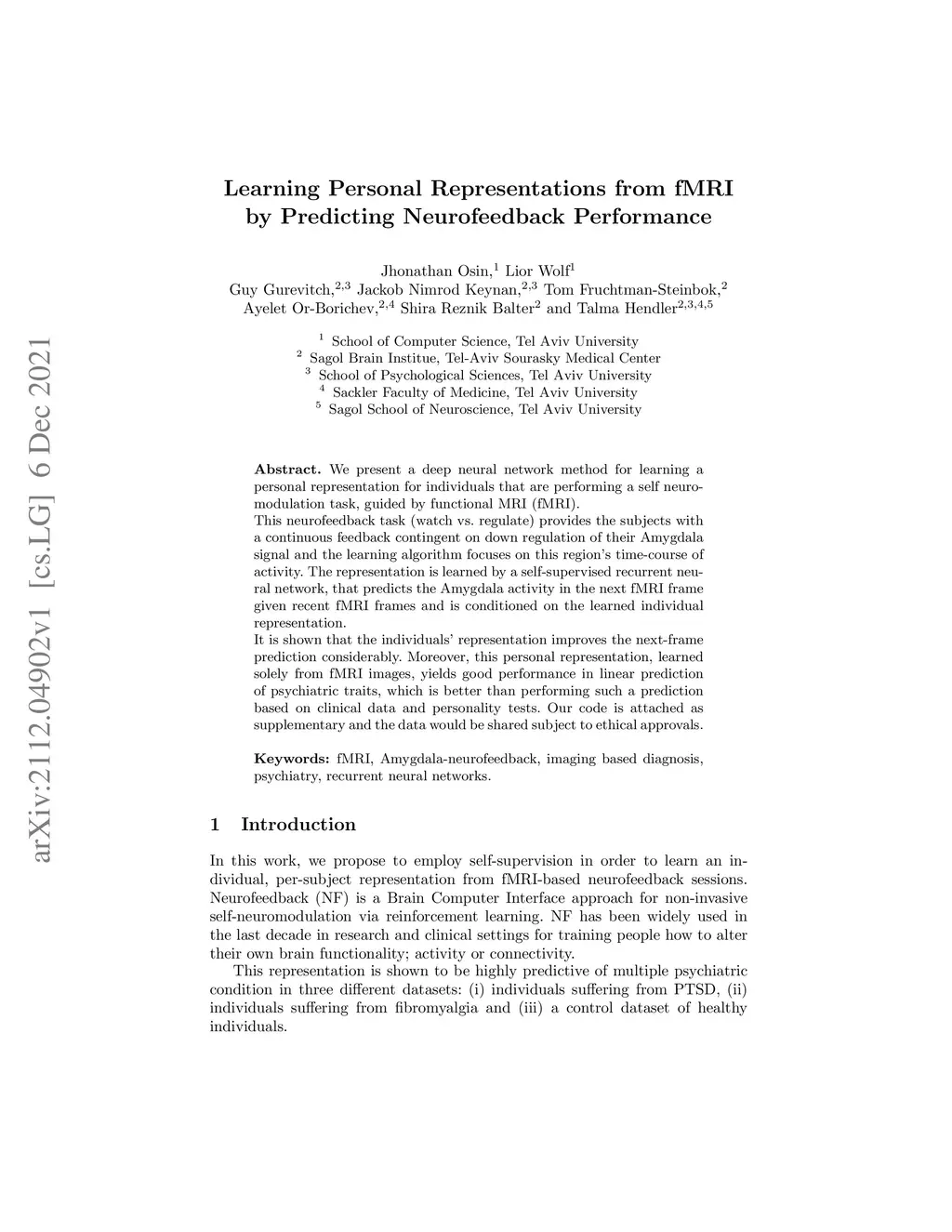 Learning Personal Representations from fMRIby Predicting Neurofeedback