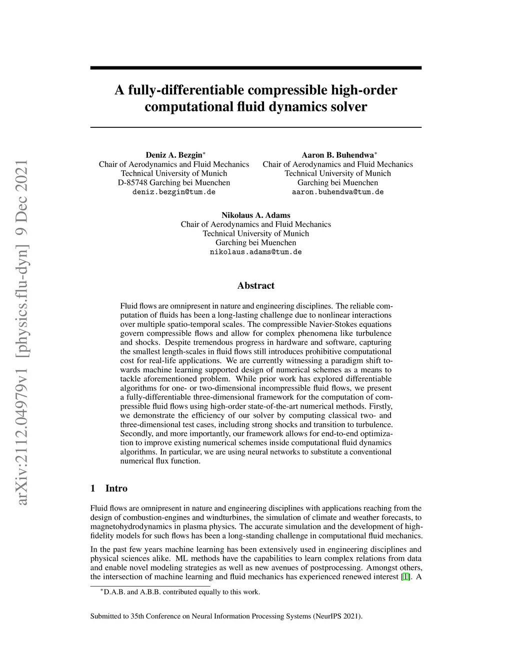 A fully-differentiable compressible high-order computational fluid
