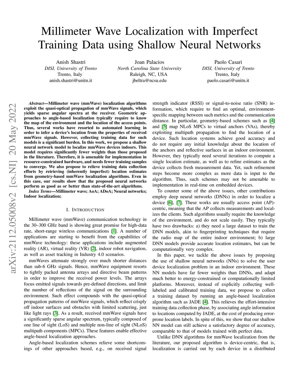 Millimeter Wave Localization with Imperfect Training Data using Shallow Neural Networks