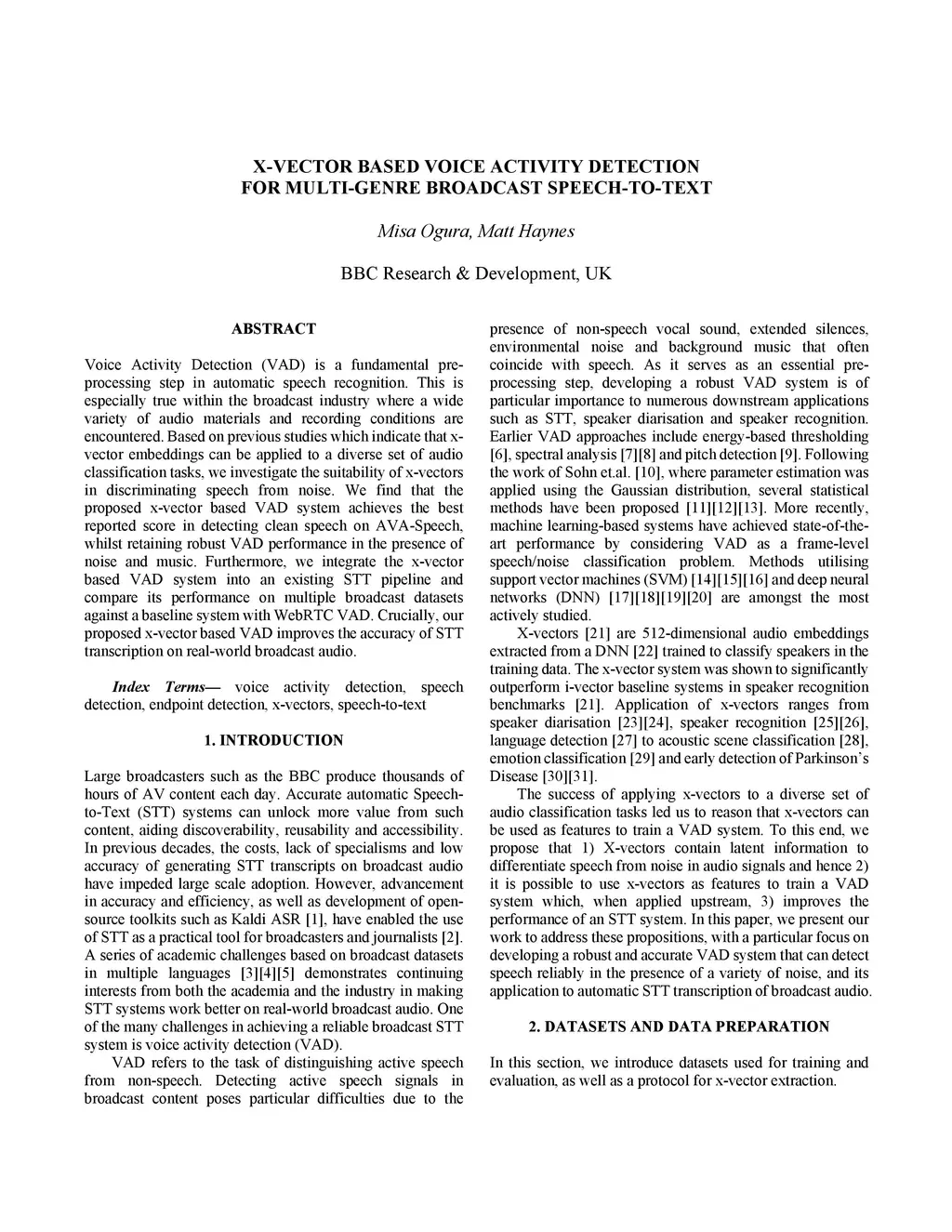 Voice Activity Detection (VAD) is a fundamental preprocessing step in automatic speech recognition. This is especially true within the broadcast industry where a wide variety of audio materials and recording conditions are encountered. Based on previous studies which indicate that xvector embeddings can be applied to a diverse set of audio classification tasks, we investigate the suitability of x-vectors in discriminating speech from noise. We find that the proposed x-vector based VAD system achieves the best reported score in detecting clean speech on AVA-Speech, whilst retaining robust VAD performance in the presence of noise and music. Furthermore, we integrate the x-vector based VAD system into an existing STT pipeline and compare its performance on multiple broadcast datasets against a baseline system with WebRTC VAD. Crucially, our proposed x-vector based VAD improves the accuracy of STT transcription on real-world broadcast audio