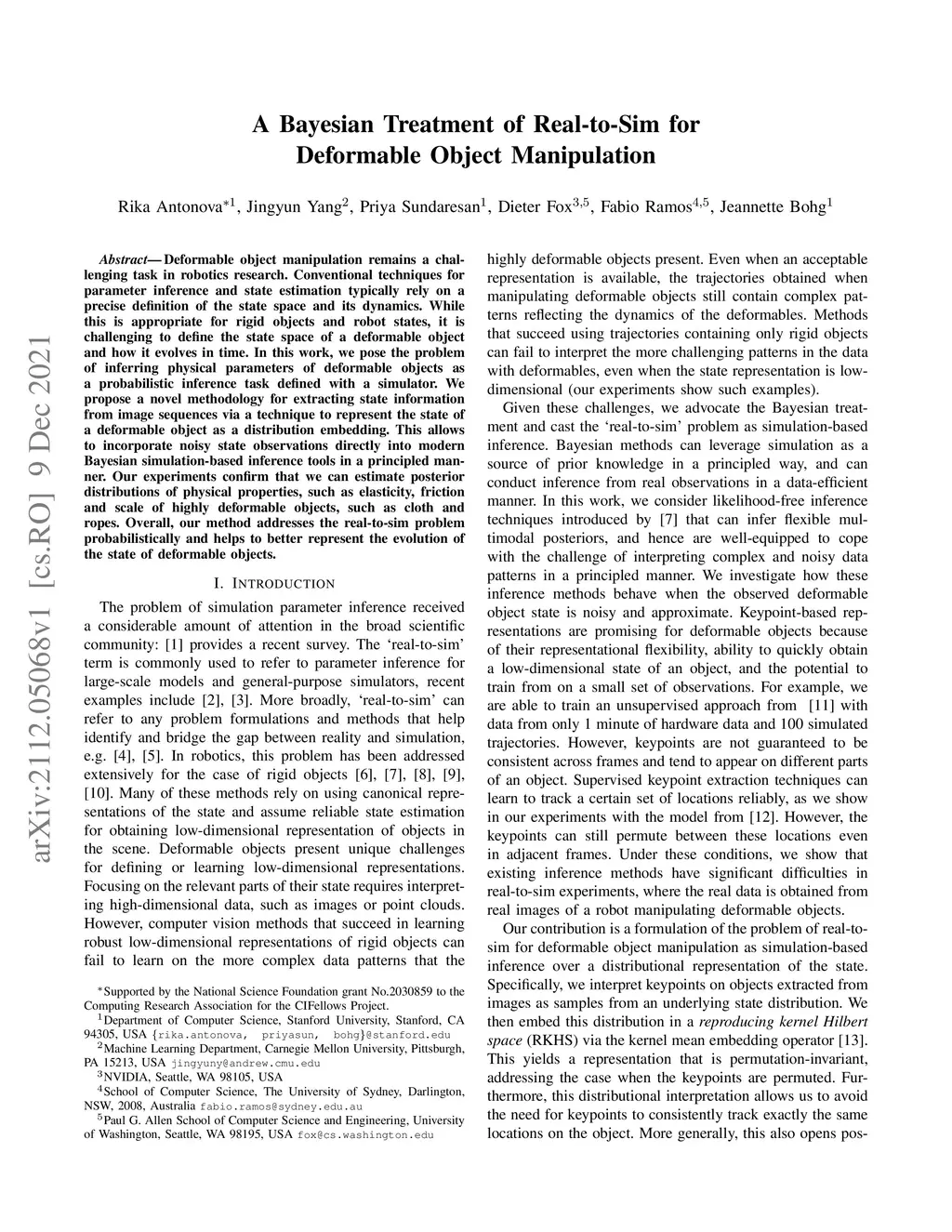 A Bayesian Treatment of Real-to-Sim for Deformable Object Manipulation