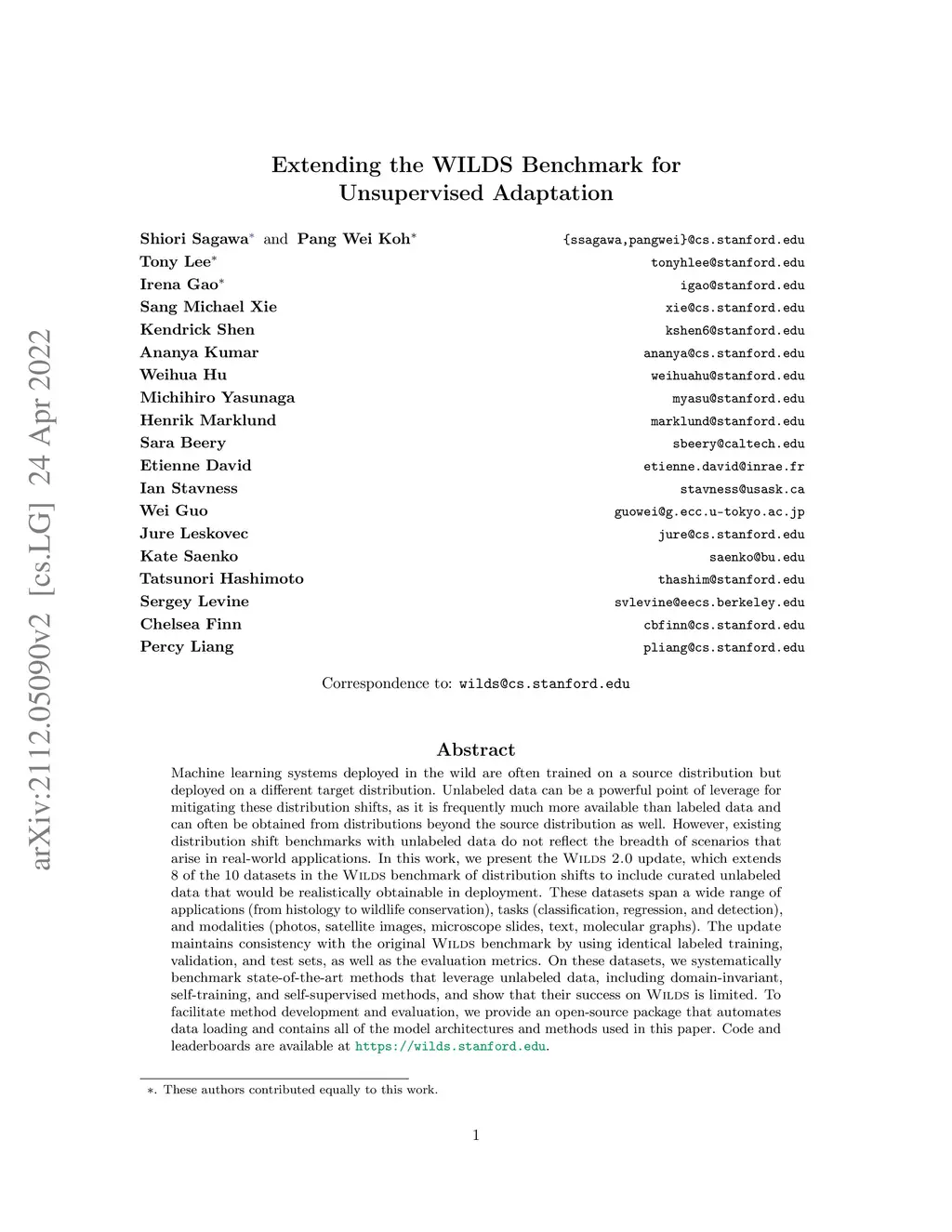 Extending the WILDS Benchmark for Unsupervised Adaptation