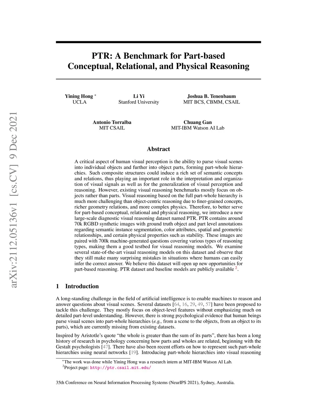 PTR: A Benchmark for Part-based Conceptual, Relational, and Physical