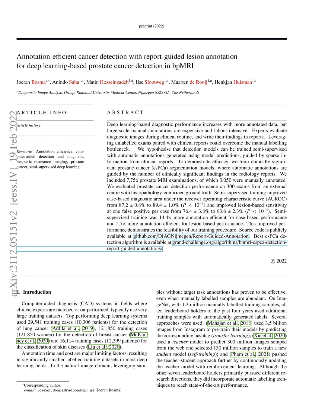 Annotation-efficient cancer detection with report-guided lesion