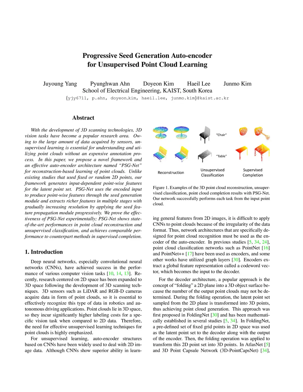 Progressive Seed Generation Auto-encoder for Unsupervised Point Cloud