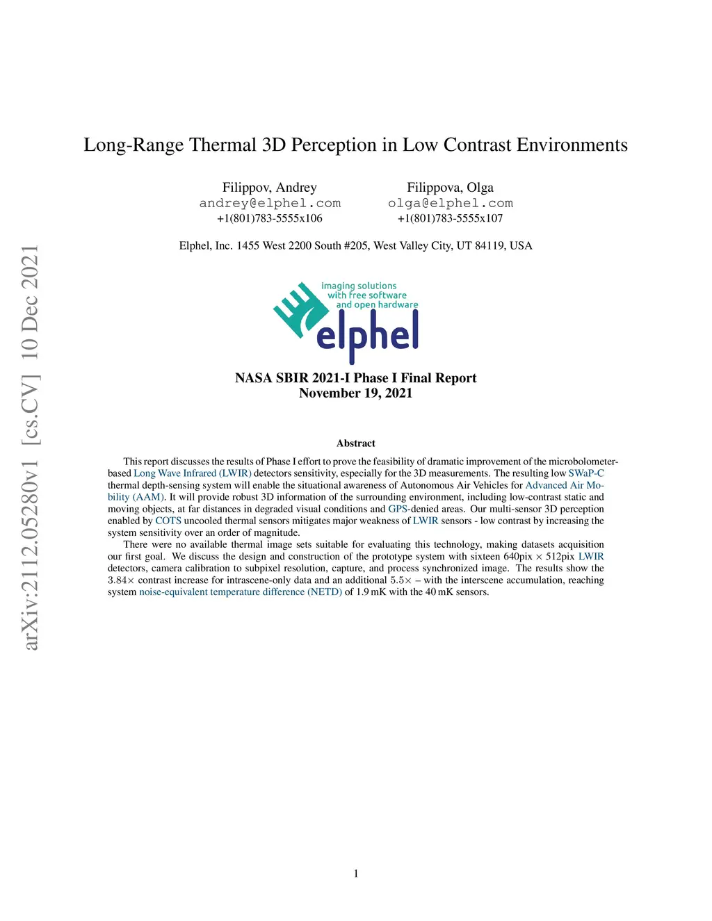 This report discusses the results of SBIR Phase I effort to prove the feasibility of dramatic improvement of the microbolometer-based Long Wave Infrared (LWIR) detectors sensitivity, especially for the 3D measurements. The resulting low SWaP-C thermal depth-sensing system will enable the situational awareness of Autonomous Air Vehicles for Advanced Air Mobility (AAM). It will provide robust 3D information of the surrounding environment, including low-contrast static and moving objects, at far distances in degraded visual conditions and GPS-denied areas. Our multi-sensor 3D perception enabled by COTS uncooled thermal sensors mitigates major weakness of LWIR sensors - low contrast by increasing the system sensitivity over an order of magnitude. There were no available thermal image sets suitable for evaluating this technology, making datasets acquisition our first goal. We discuss the design and construction of the prototype system with sixteen 640pix x 512pix LWIR detectors, camera calibration to subpixel resolution, capture, and process synchronized image. The results show the 3.84x contrast increase for intrascene-only data and an additional 5.5x - with the interscene accumulation, reaching system noise-equivalent temperature difference (NETD) of 1.9 mK with the 40 mK sensors.
