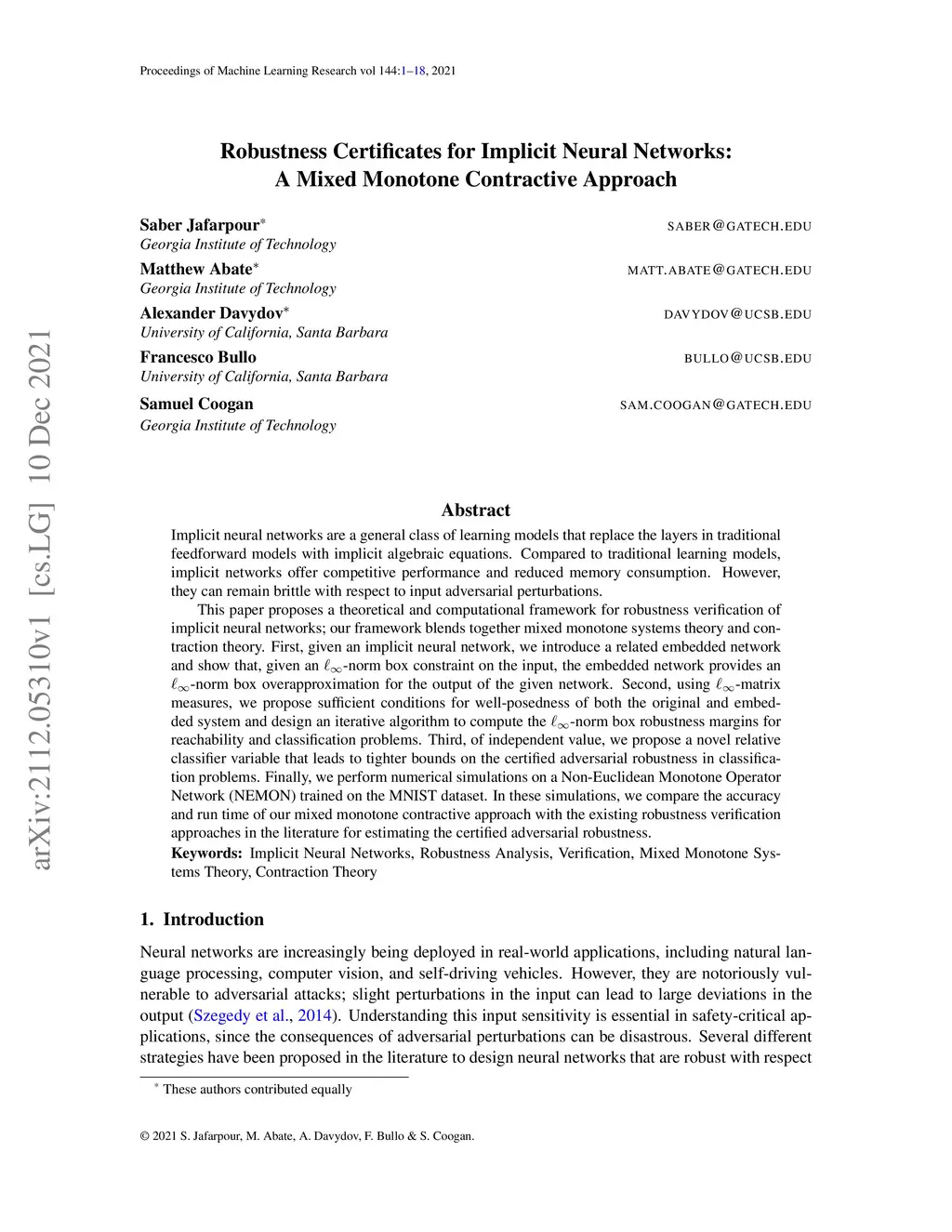 Robustness Certificates for Implicit Neural Networks: A Mixed Monotone
