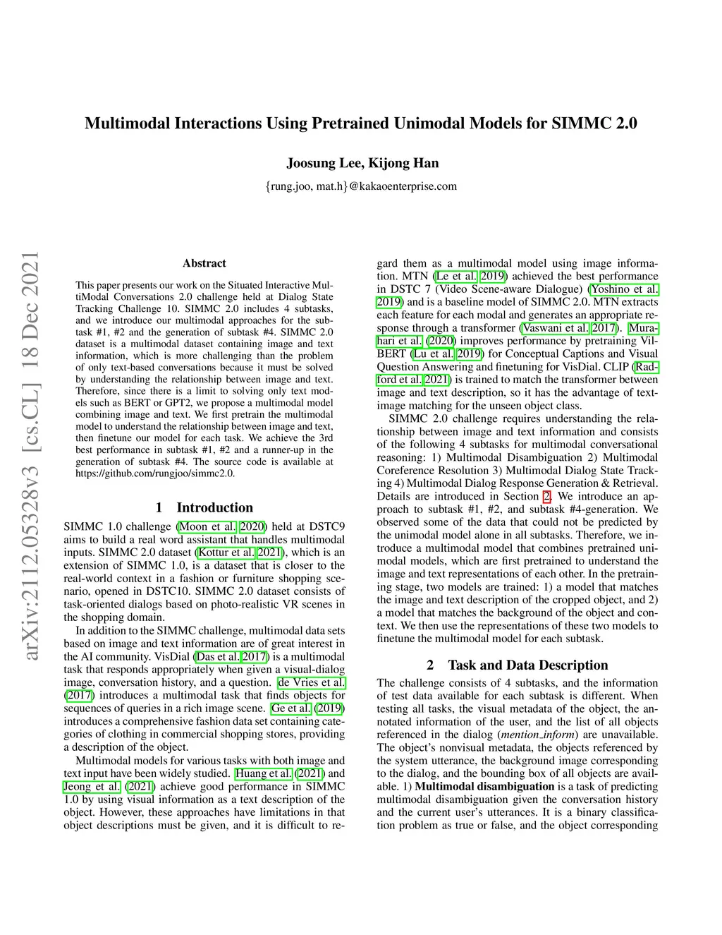 Multimodal Interactions Using Pretrained Unimodal Models for SIMMC 2.0
