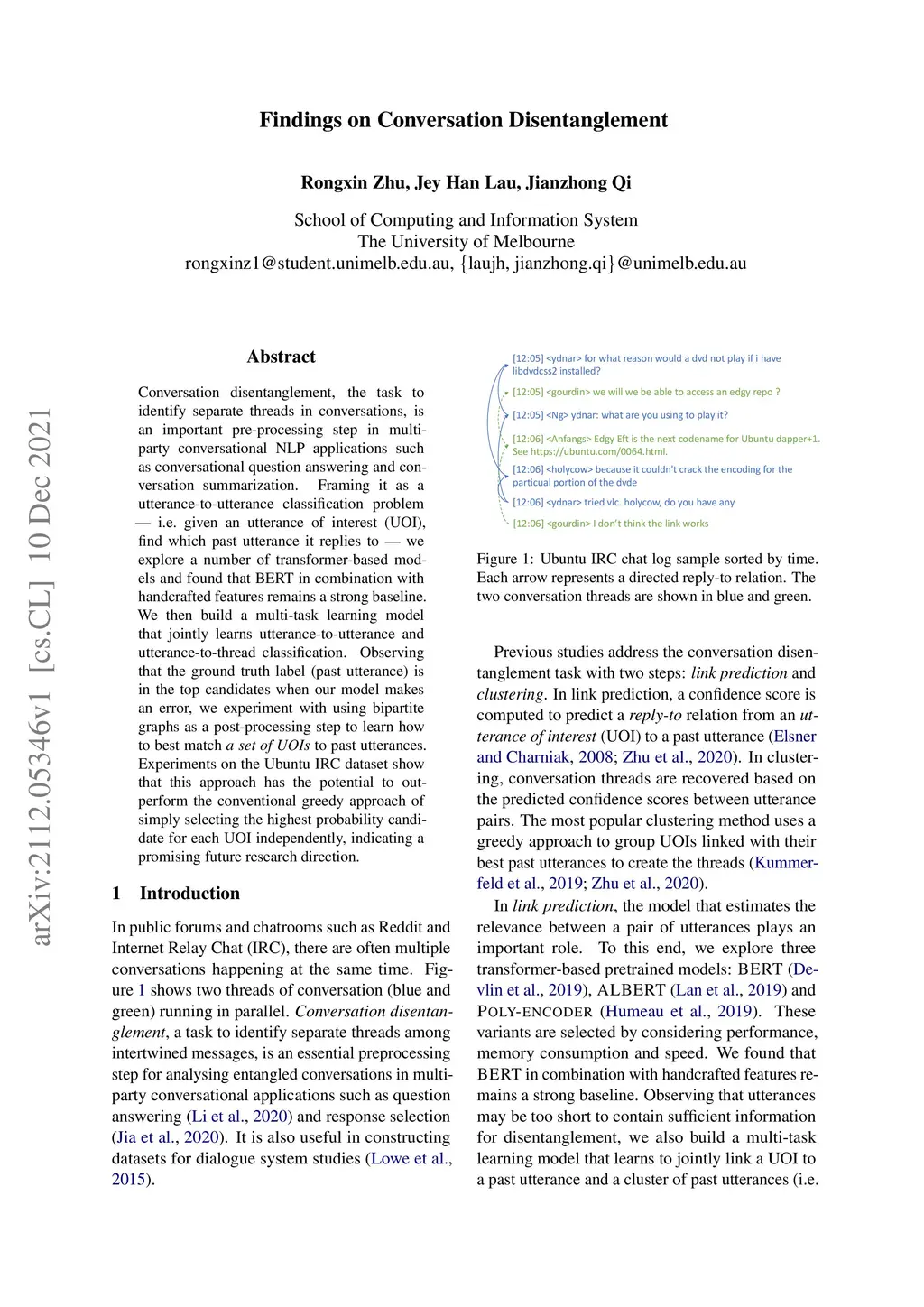 Findings on Conversation Disentanglement