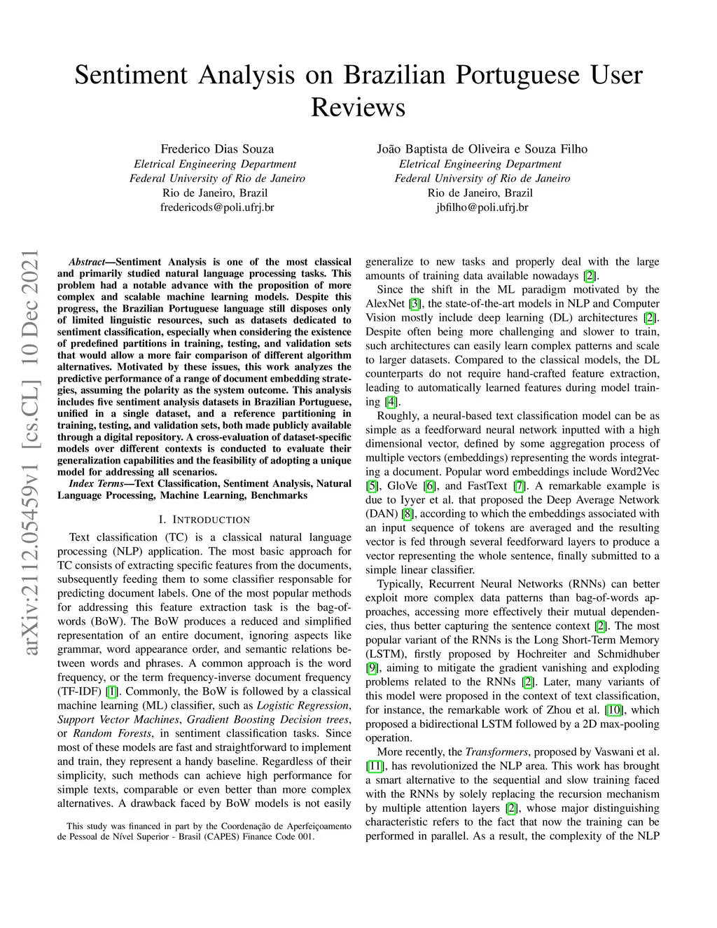 Sentiment Analysis on Brazilian Portuguese User Reviews